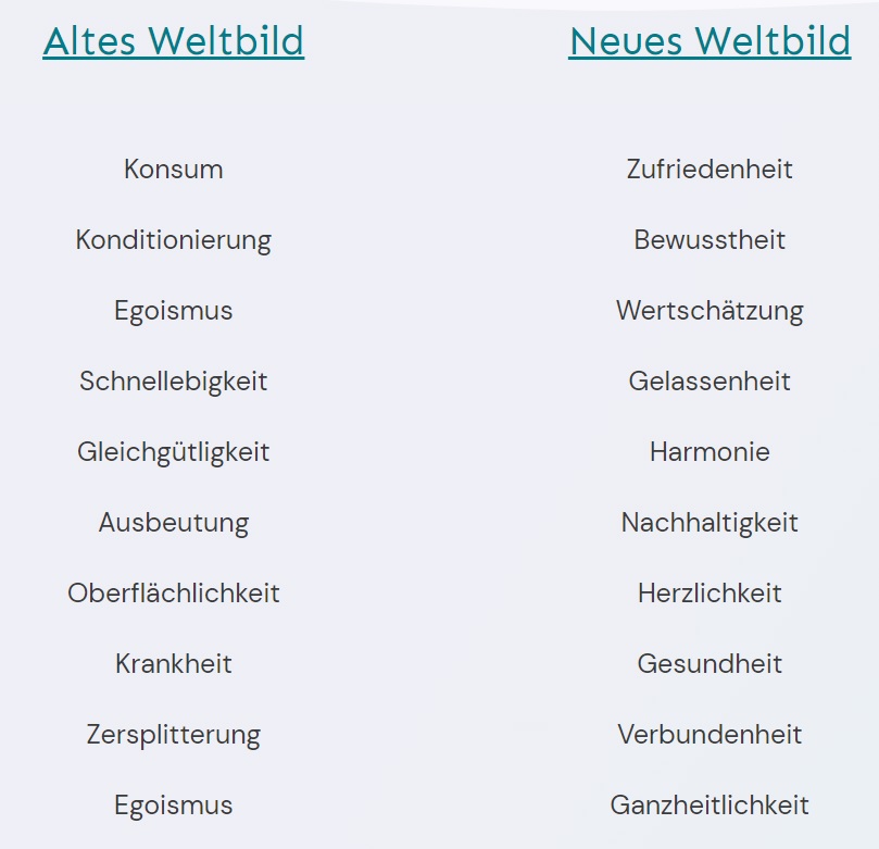 Alte Paradigmen, Konzepte und Denkweisen haben lange funktioniert, erweisen sich aber jetzt als nicht mehr angebracht. Das alte Weltbild muss abgelegt werden, und Platz für Neues wird geschaffen. Mit der Erkenntnis, dass wir alle Teil des Ganzen sind, ist dieser Schritt auch nicht schwierig zu vollziehen.